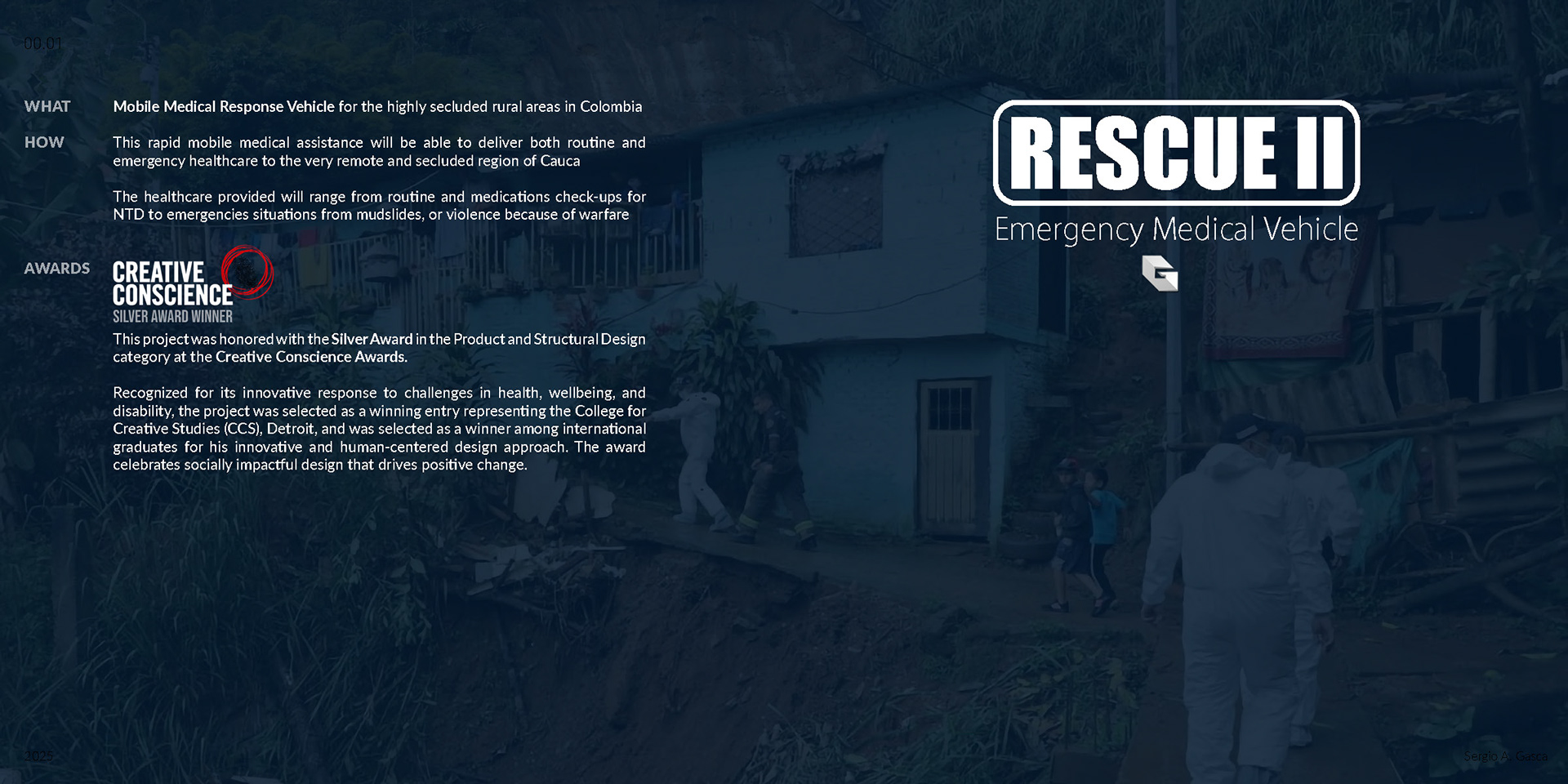 Mobile Medical Response Vehicle for the highly secluded rural areas in Colombia. This rapid mobile medical assistance will be able to deliver both routine and emergency healthcare to the very remote and secluded region of Cauca. The healthcare provided will range from routine check-ups and medication delivery for NTD, to emergency situations from mudslides or violence because of warfare